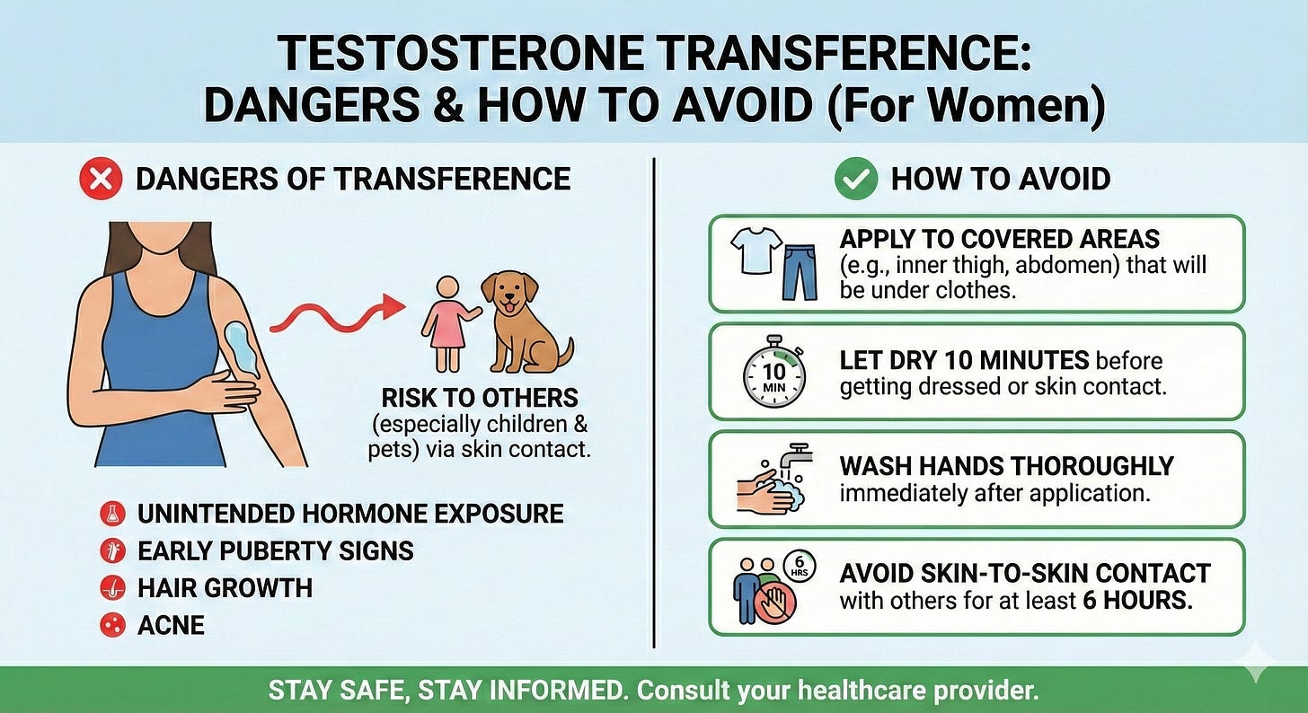 This isn’t meant to scare you. Millions of women use topical testosterone safely. But it requires awareness and consistent habits, especially if you have young children or pets in your household.